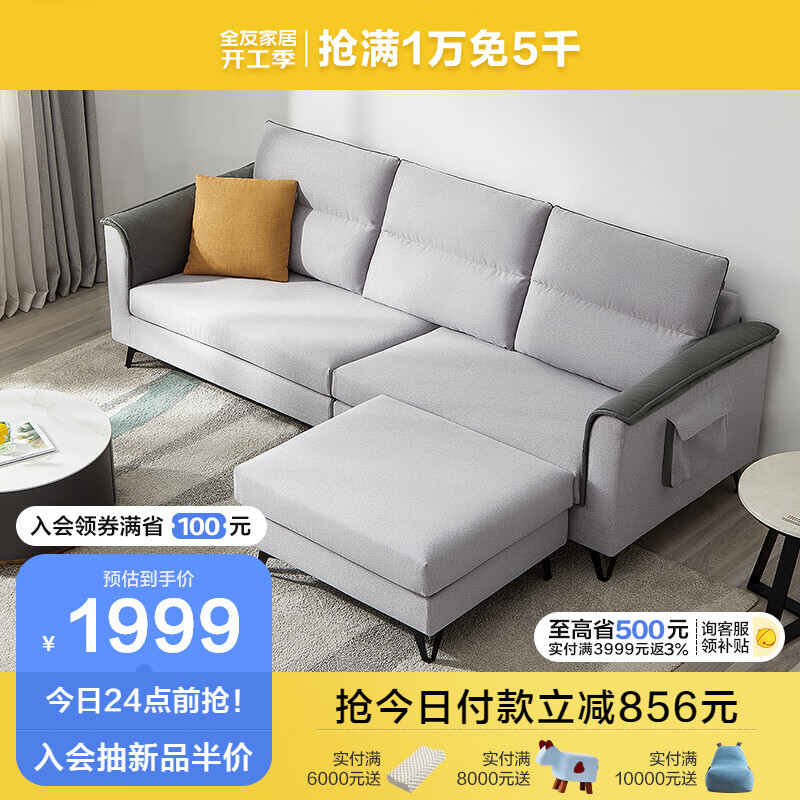 全友家居三人位直排布艺沙发北欧休闲沙发凳简约客厅沙发小户型102567价格:2855.71元!