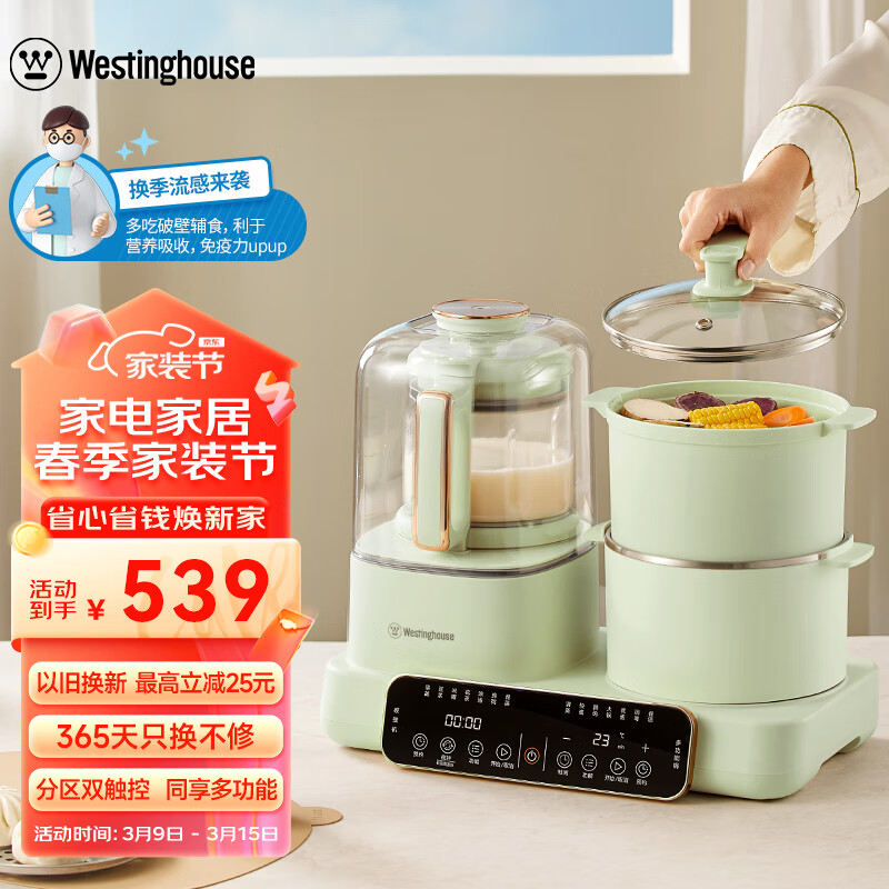 西屋(Westinghouse)多功能破壁机12D预约加热全自动豆浆机家用二合一早餐机蒸煮料理机 WSC12D02价格:539.00元!