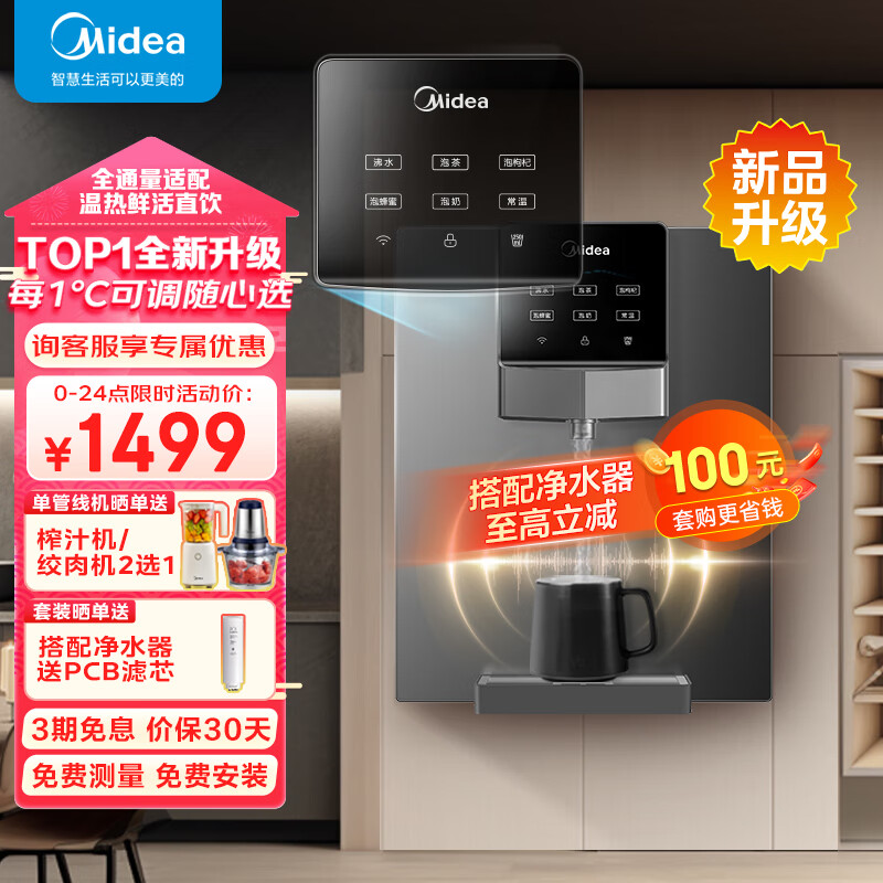 美的(Midea)家用净水器伴侣管线机 秒速加热直饮一体 智能触控六档定量出水 全通量匹配壁挂式饮水机 MG245-R价格:1499.00元!