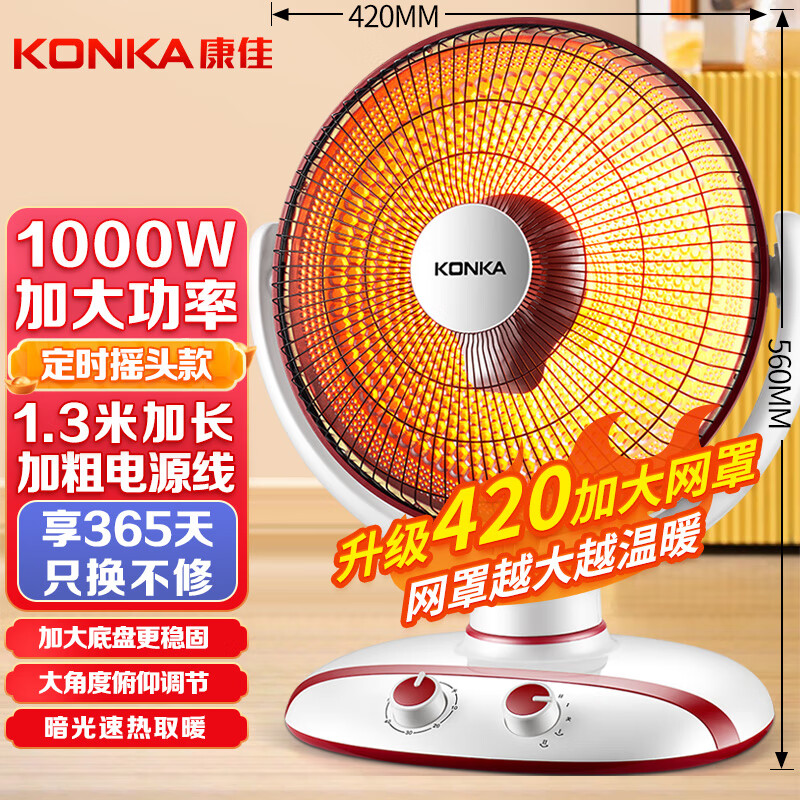 康佳(KONKA)取暖器家用小太阳电暖器速热电暖气台式可摇头电热取暖烤火炉暗光速热KH-TY81价格:149.00元!
