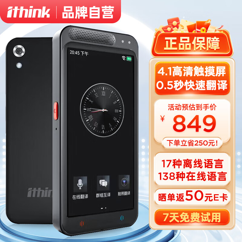 Ithink 翻译机 同声传译6.0 多语种离线语音拍照智能翻译器 翻译笔出国旅游口语实时翻译神器价格:969.00元!