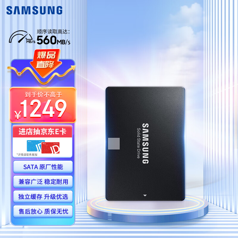 三星(SAMSUNG)2TB SSD固态硬盘 SATA3.0接口 870 EVO(MZ-77E2T0B)价格:1249.00元!