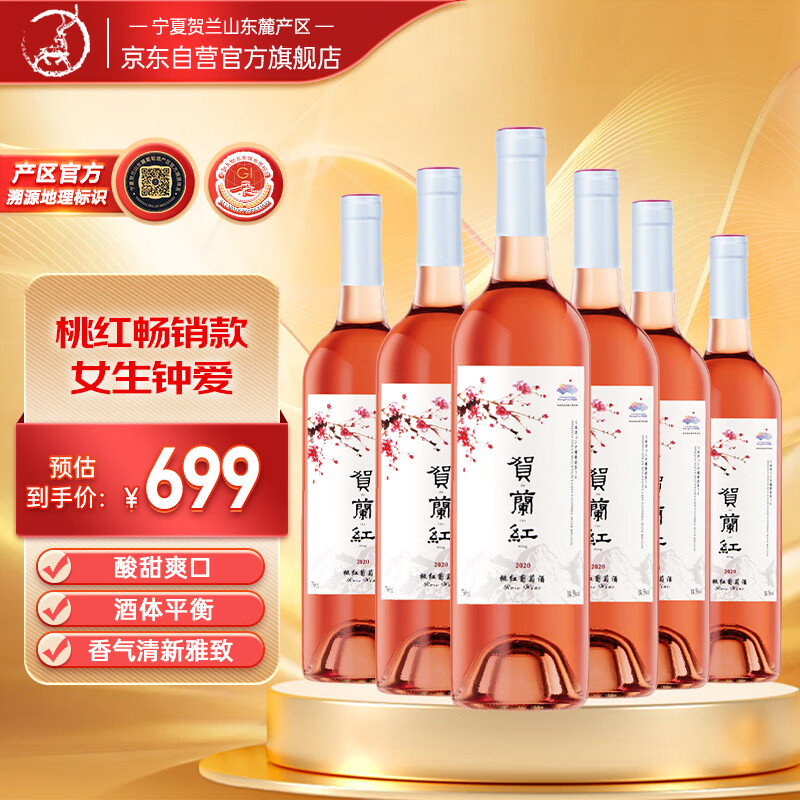 贺兰红赤霞珠桃红葡萄酒国产红酒宁夏贺兰山东麓产区750ml*6瓶整箱价格:799.00元!