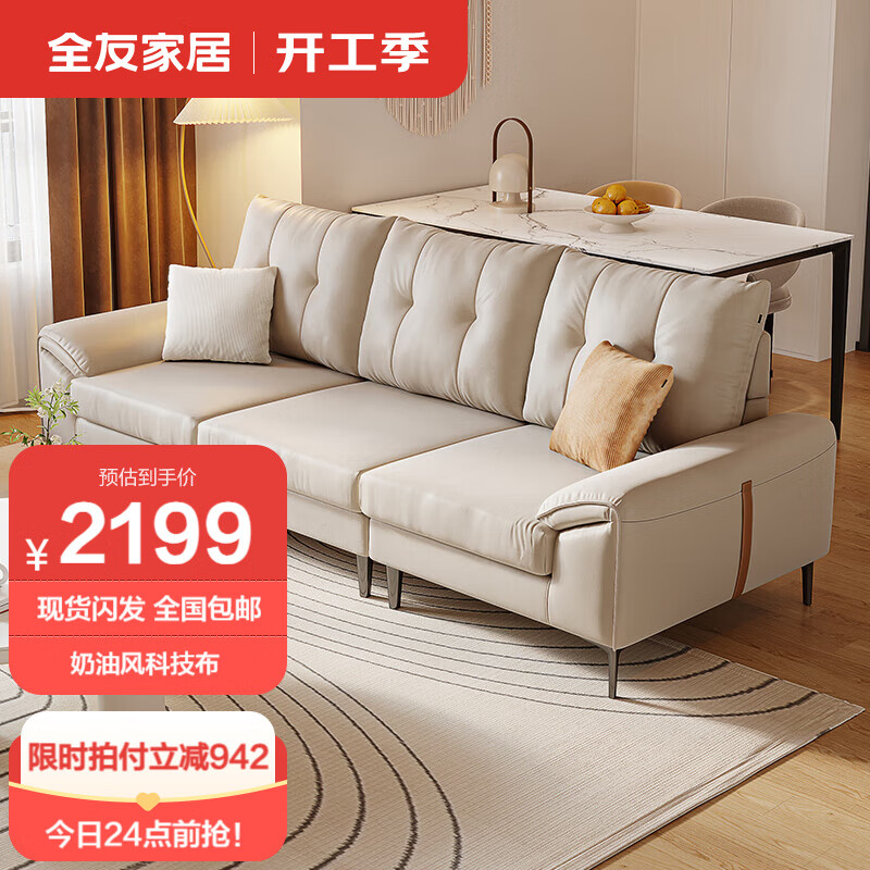 全友家居 科技布沙发客厅简约现代奶油风小户型直排式布艺沙发111037价格:3141.43元!