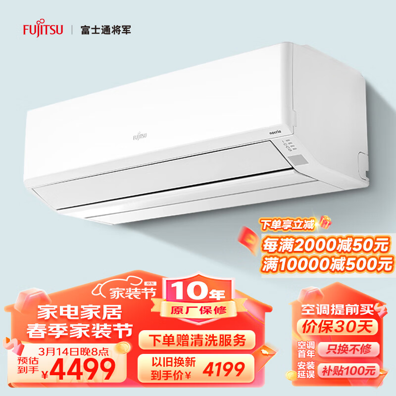 富士通 11-16㎡适用 新1级能效 1匹 诺可力T空调 以旧换新 空调挂机ASQG09KTCA (KFR-25G/Bpkta)价格:4599.00元!