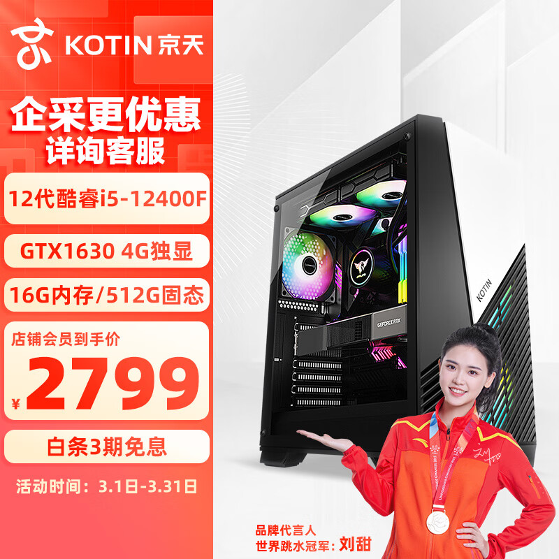 京天Duel D51 i5-12400F/GTX1630 4G/512G SSD/16G/3年上门/电脑台式机组装电脑整机/吃鸡电竞游戏主机价格:2799.00元!