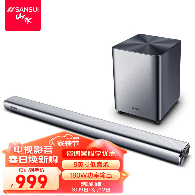 山水(SANSUI)DV-92A 回音壁音响 音箱 家庭影院 Soundbar电视音响 蓝牙音响 条形音响 壁挂音响 独立低音炮价格:980.00元!