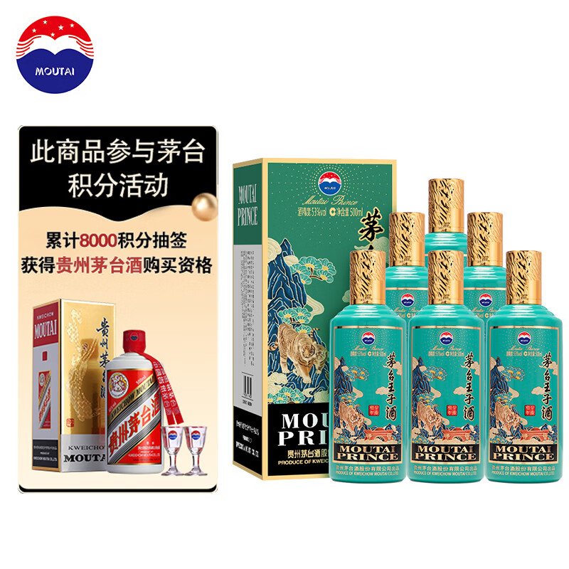 茅台(MOUTAI)王子酒 壬寅虎年 酱香型白酒 53度 500ml*6瓶 整箱装价格:3114.00元!