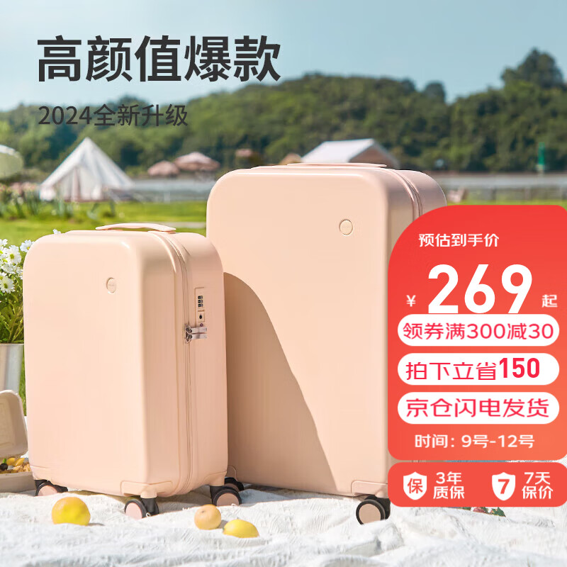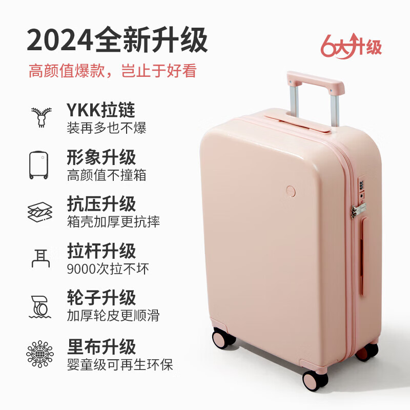 米熙拉杆箱子行李箱大容量旅行箱女密码箱行李箱包淡山茱萸粉22英寸36价格:419.00元!