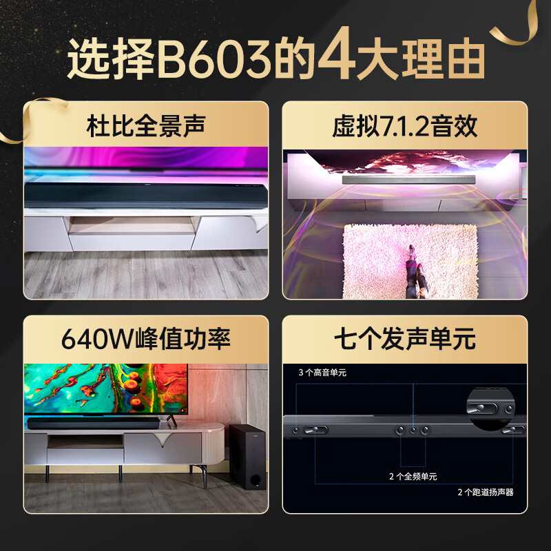 飞利浦(PHILIPS)B603 回音壁 电视音响 7.1.2声道音效 320w大功率 杜比全景声 家庭影院 蓝牙音箱价格:1499.00元!