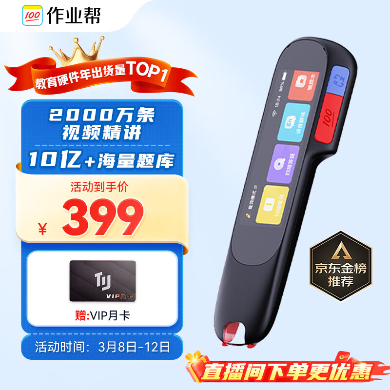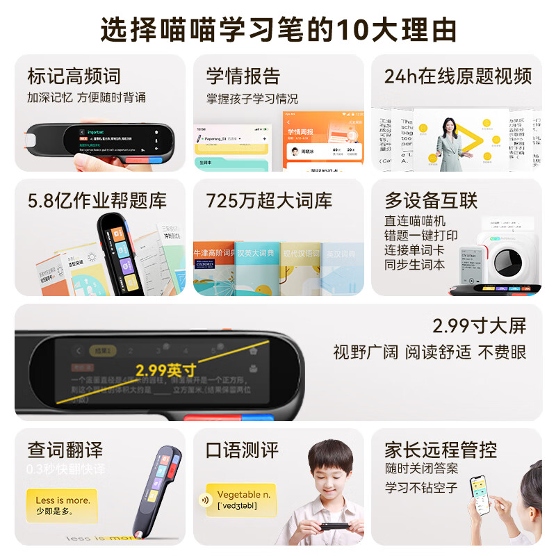 作业帮喵喵机小初高全科学习笔S1 扫难题看讲解电子词典笔翻译笔英语点读笔翻译机词笔扫描笔 2.99英寸价格:399.00元!