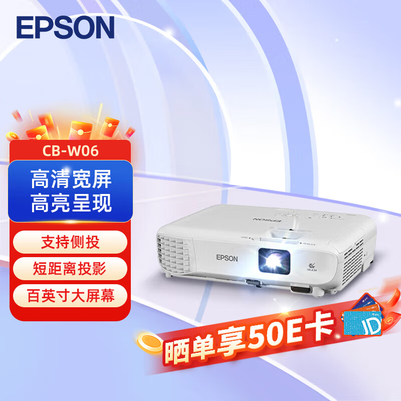 爱普生(EPSON) CB-W06 投影仪 投影机办公 培训(高清WXGA 3700流明 短距投影 支持侧投)价格:3999.00元!