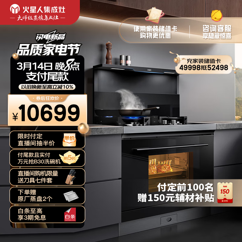 火星人集成灶T30BC蒸烤一体集成灶 家用蒸箱烤箱 集成灶一体式 挥手智控 液化气价格:10799.00元!
