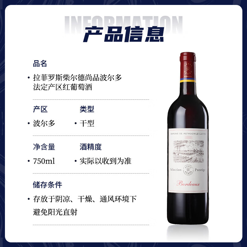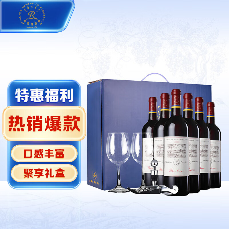 拉菲(LAFITE)尚品波尔多干红葡萄酒 750ml*6瓶法国红酒礼盒六支聚享装价格:759.00元!