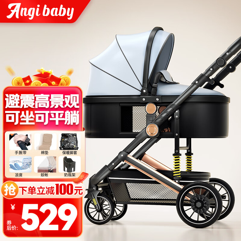 ANGI BABY婴儿推车可坐可躺可折叠婴儿车高景观双向减震手推车价格:529.00元!