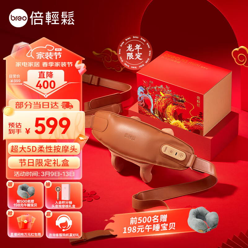倍轻松(breo)N5mini尊享版龙年礼盒款颈椎按摩器按摩披肩肩颈按摩器斜方肌腿腰颈部按摩仪器 送礼生日节日礼物价格:599.00元!