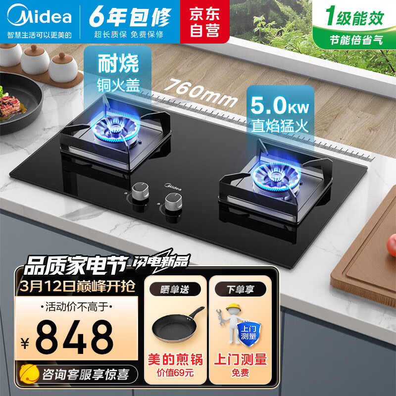 美的(Midea)燃气灶液化气 煤气灶双灶 铜火盖 5.0kW大火力灶具 家用台嵌两用灶具 Q230A-M 液化气价格:848.00元!