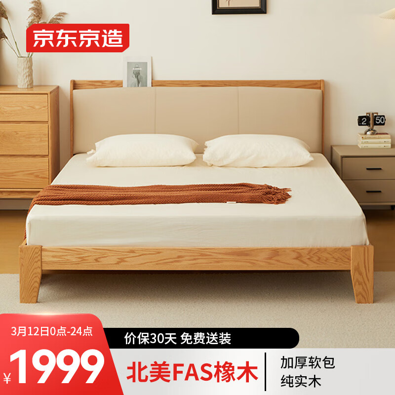 京东京造实木床 FAS级橡木|软包床头|大板厚材 主卧双人床1.5×2米BW06价格:2199.00元!