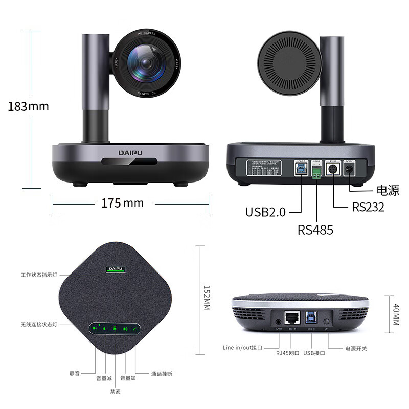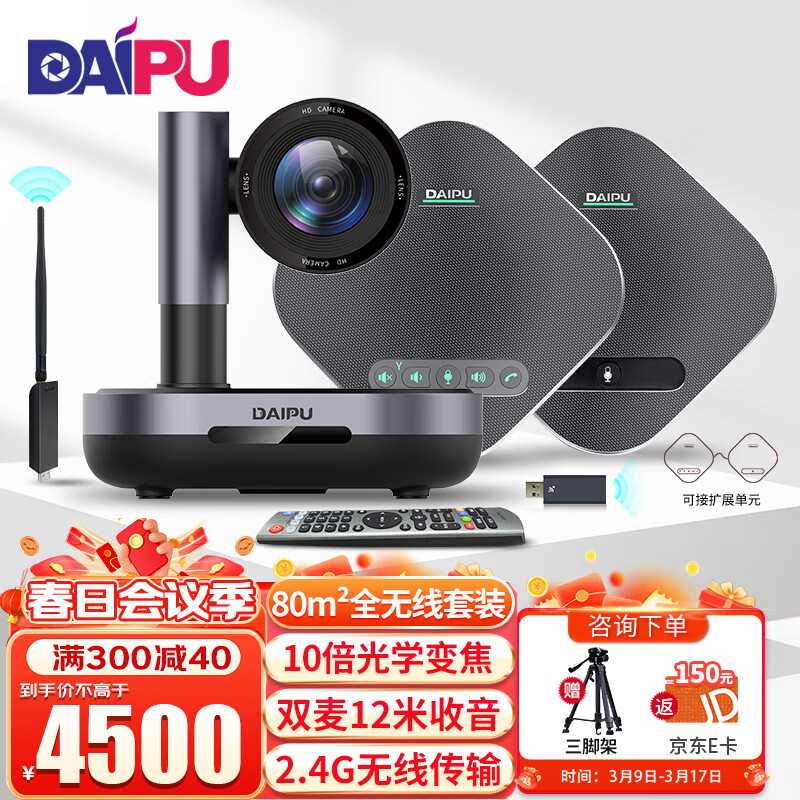 戴浦(DAIPU)大型视频会议室套装T75 适用60-80㎡(10倍变焦会议摄像头+2.4无线会议全向麦克风一拖二级联)价格:5180.00元!