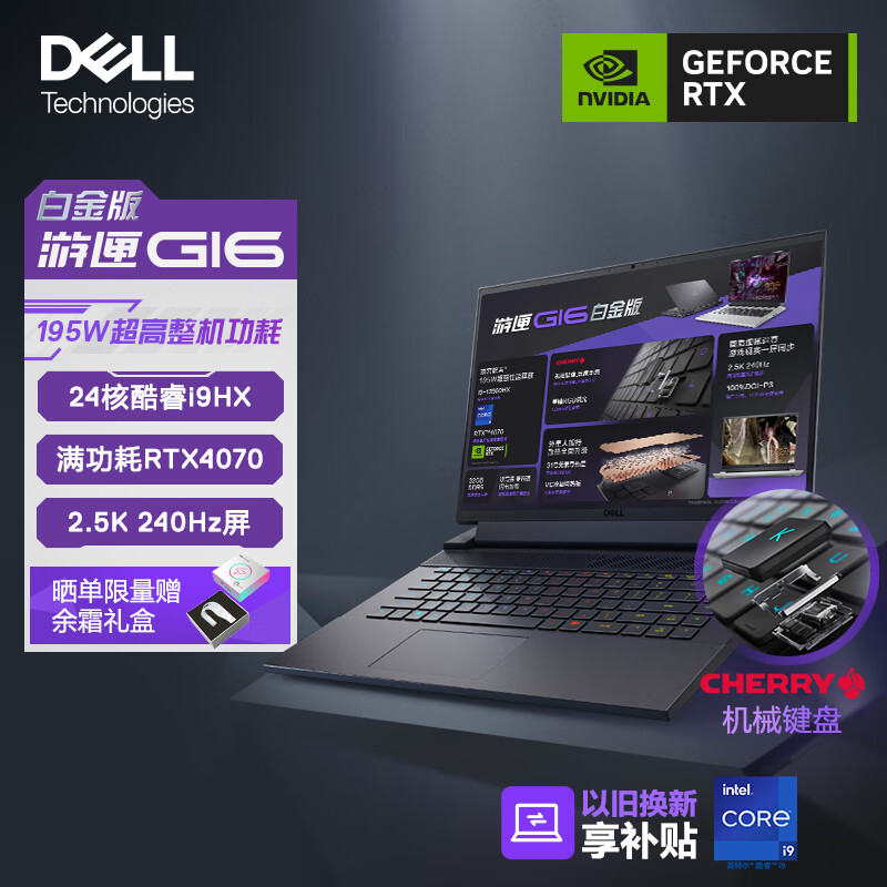 戴尔(DELL)游匣G16 游戏本笔记本电脑16英寸电竞本(24核酷睿i9HX 16G 1TB RTX4070 2.5K 240Hz CHERRY键盘)黑价格:10999.00元!