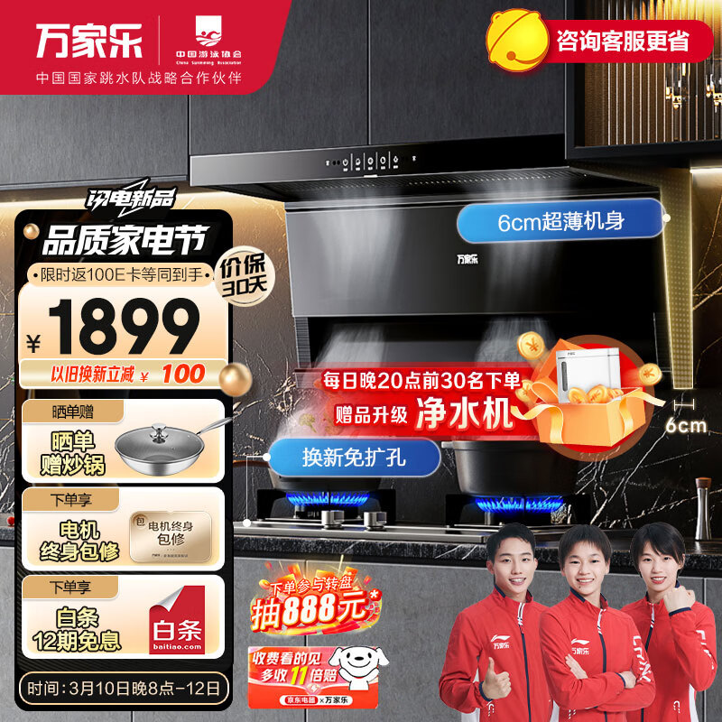 万家乐顶侧双吸油烟机 23立方抽油烟机烟灶套装自清洗换新免扩孔小尺寸不锈钢灶具套装TAK5+AY4G天然气价格:2099.00元!