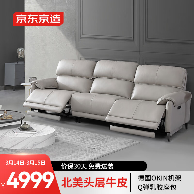 京东京造真皮沙发 头层牛皮|德国OKIN机架|双电动位 客厅大户型2.7m灰SE01价格:5799.00元!