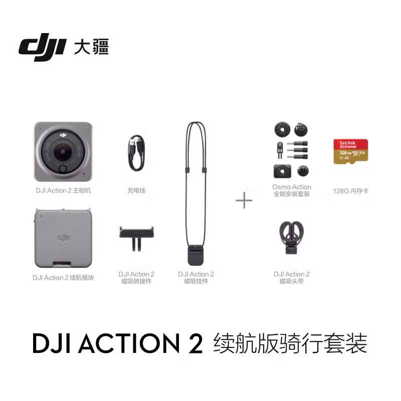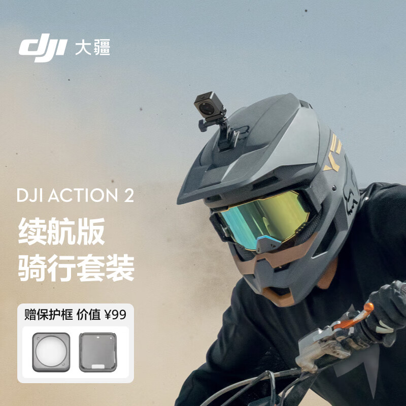 大疆 DJI Action 2 续航版骑行套装 Osmo灵眸运动相机 摩托车自行车头戴小型vlog相机+随心换 1 年版价格:2200.90元!