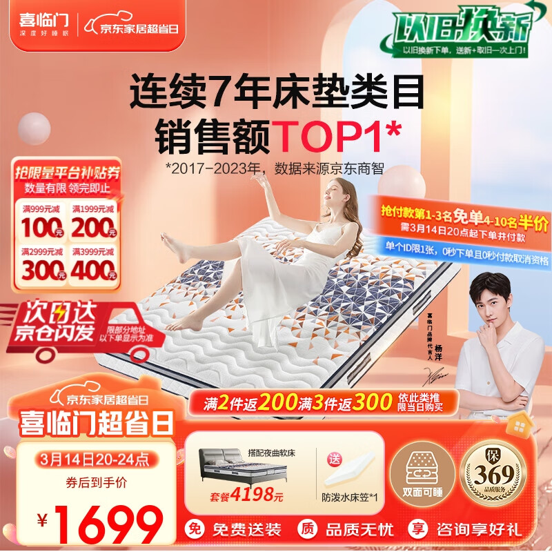 喜临门高纯乳胶3D椰棕床垫 抑菌防螨独袋弹簧床垫 蝶梦2S 1.5x1.9米价格:2199.00元!