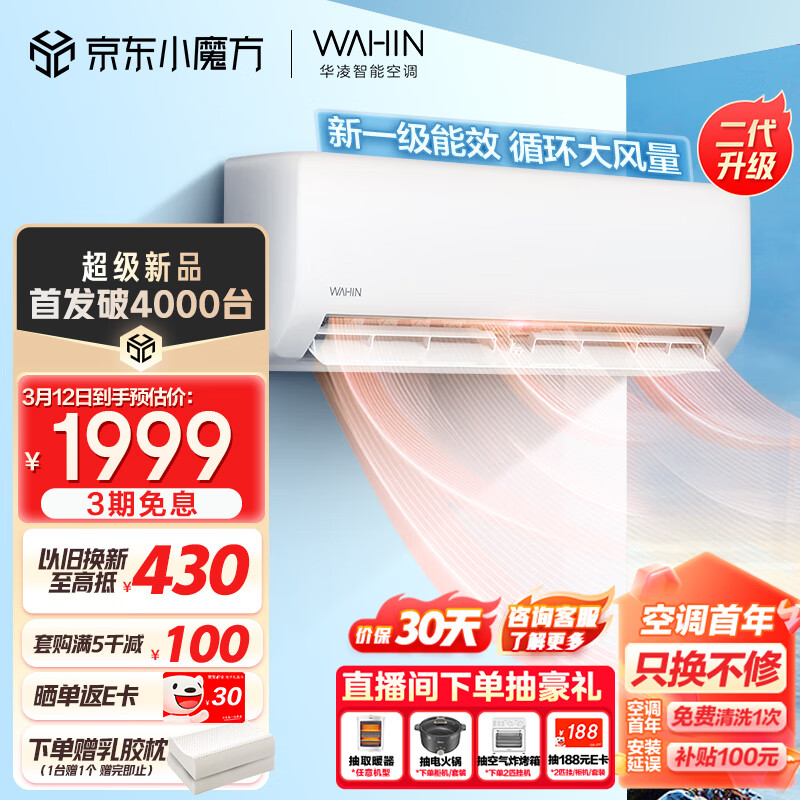 华凌空调 新一级能效 变频冷暖 大风量1匹 小冰棒 挂式空调挂机 升级二代 以旧换新KFR-26GW/N8HA1Ⅱ价格:1999.00元!