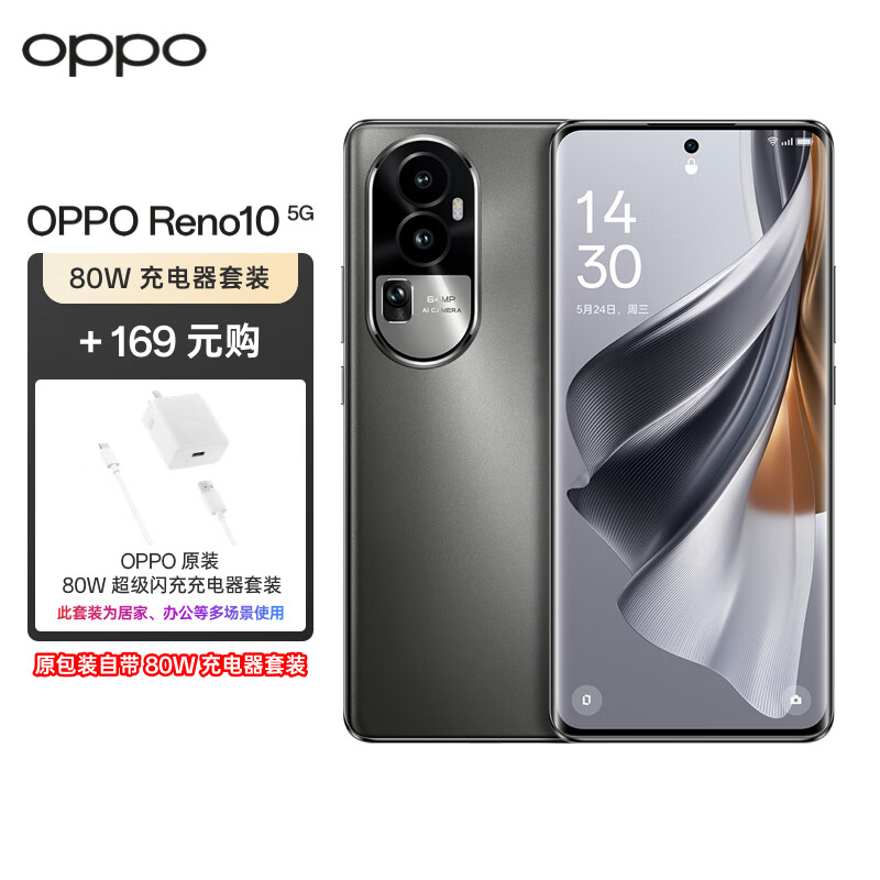 OPPO Reno10 8GB+256GB 月海黑 6400万水光人像 超光影长焦镜头5G AI手机【80W 闪充充电器备用套装】价格:2468.00元!