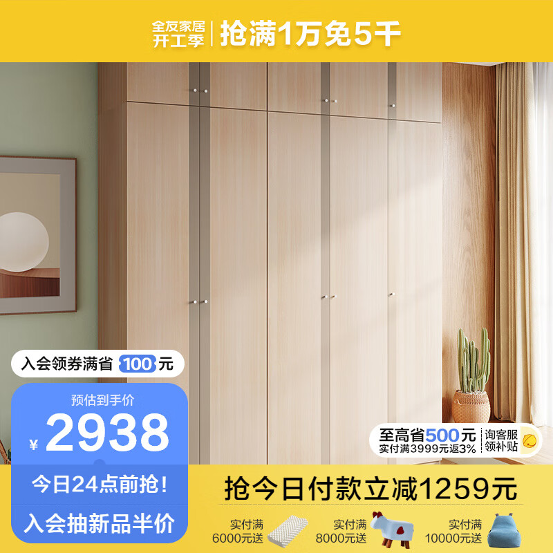 全友家居 衣柜北欧简约平开门衣柜多规格半定制灵活组合衣橱106305价格:4197.14元!
