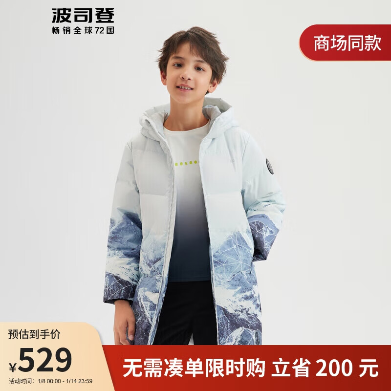 波司登童装冬季男女童羽绒服加厚连帽中长款90抑菌鸭绒儿童外套T20143140E价格:729.00元!