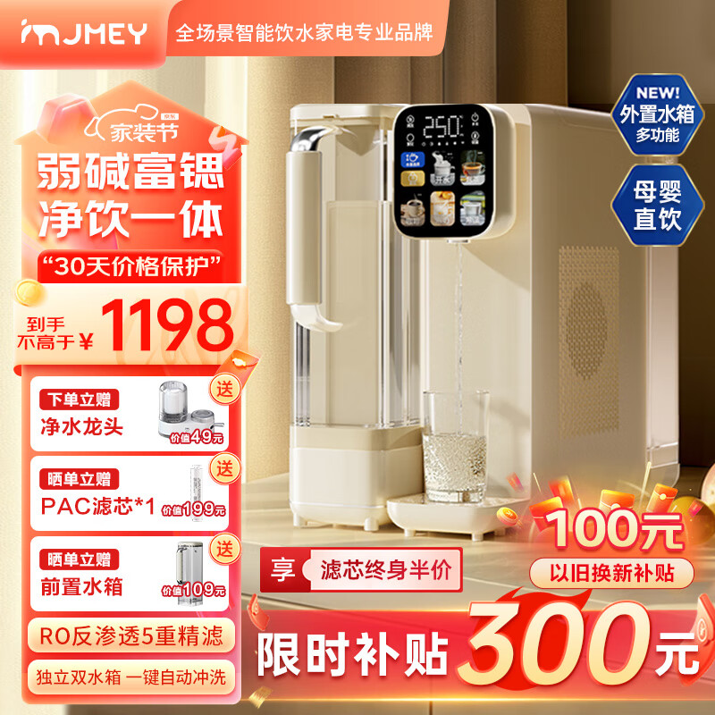 集米(jmey)R12台式即热富锶净饮机 RO反渗透多重精滤净水器 家用免安装净饮一体机 前后独立水箱价格:1198.00元!