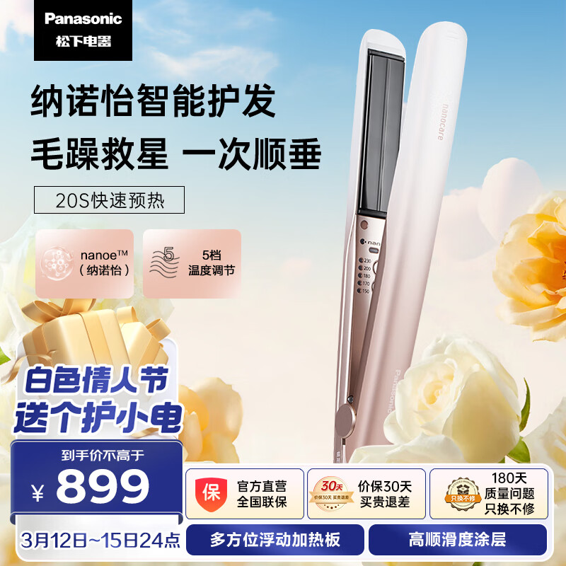 松下(Panasonic)纳诺怡直发器烫发夹直发棒造型器迷你小直发夹板电夹发板智能温控速热新年礼物EH-MHS0E白金色价格:1019.00元!