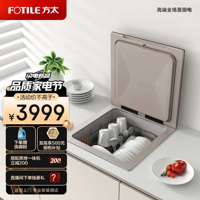 方太(FOTILE)水槽洗碗机 嵌入式一体家用百搭 单槽大容量 全自动除菌烘干 可洗海鲜果蔬 02-C3D价格:3999.00元!