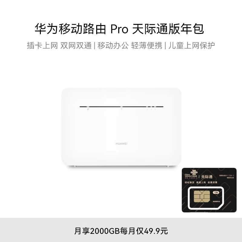 华为移动路由Pro 天际通版年包 千兆网口插卡4G路由器 随身移动双频WiFi 外置天线接口 B535-836价格:1068.00元!