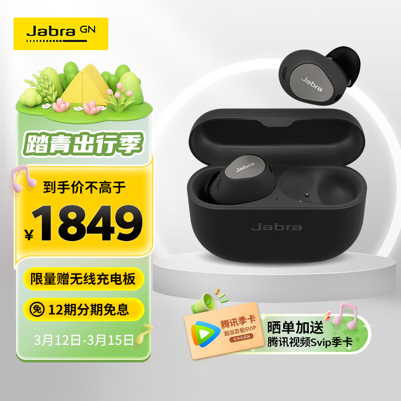 捷波朗(Jabra)Elite10 新一代E10主动降噪真无线蓝牙半开放入耳式耳机(85t升级版E10)自适应双馈主动降噪 钛黑色价格:1849.00元!