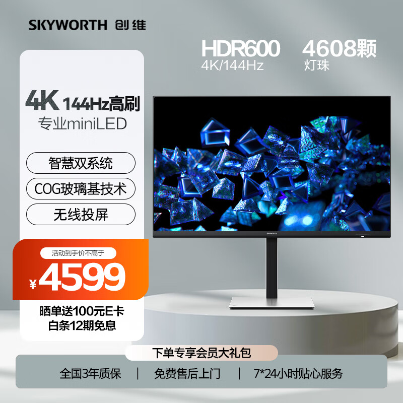 创维(Skyworth)31.5英寸 miniLED 4K 144Hz 1Ms 1152分区 4608灯珠 Type-C 电竞电脑显示器 F32D80U Lite价格:5499.00元!