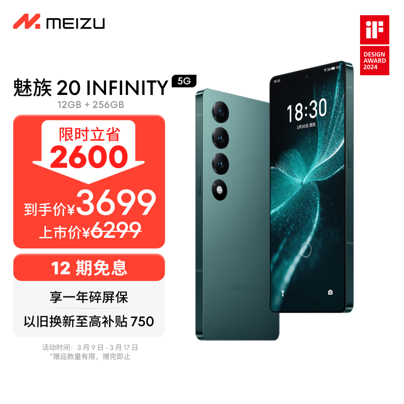 魅族(MEIZU)20 INFINITY无界版 骁龙8Gen2 Flyme系统 2K+臻彩屏 5G游戏学生拍照 领克手机域 星云绿 12+256GB价格:3699.00元!
