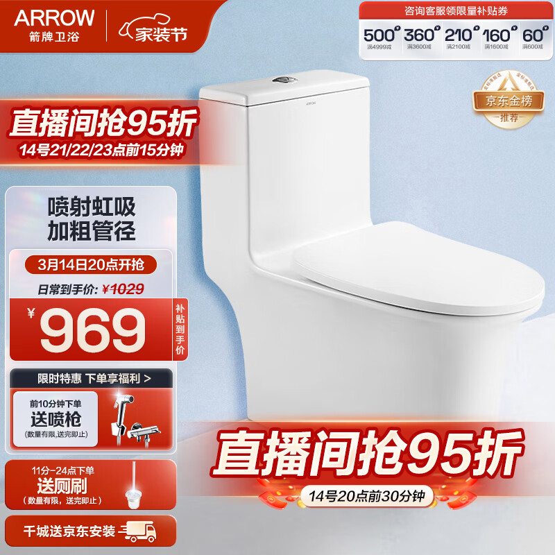 箭牌(ARROW)抽水马桶家用卫浴虹吸坐便器普通座便节水坐厕 1级水效AEB12617M价格:1239.00元!