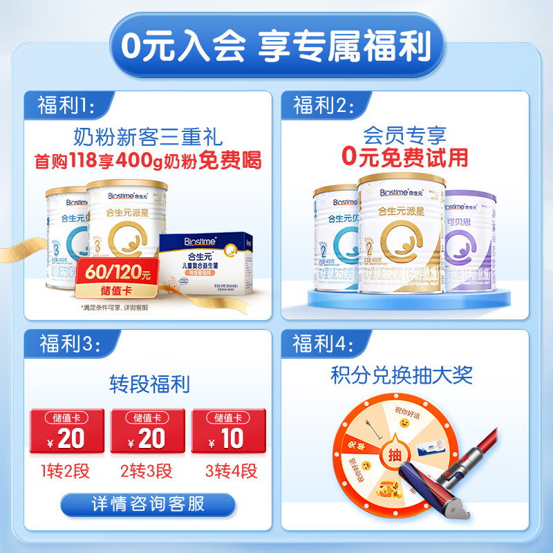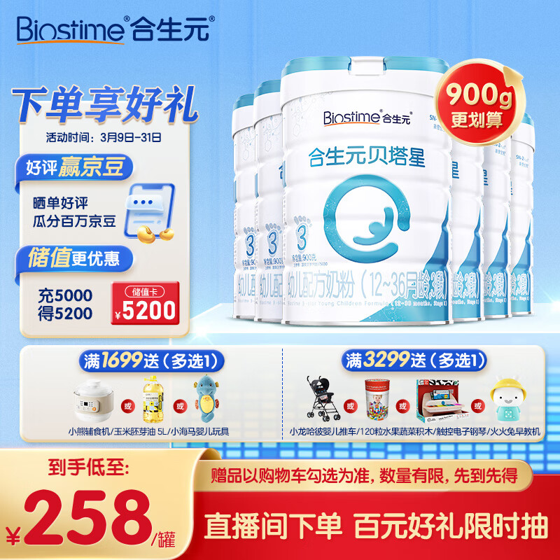 合生元(BIOSTIME)贝塔星 幼儿配方奶粉 3段(12-36个月) 法国原装进口 900克*6罐价格:1758.00元!