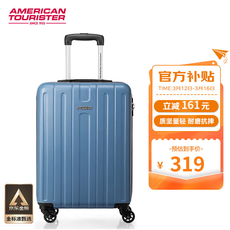 美旅箱包时尚条纹行李箱旅游登机箱旅行箱大学生女密码箱20英寸TC3雾蓝色价格:319.00元!