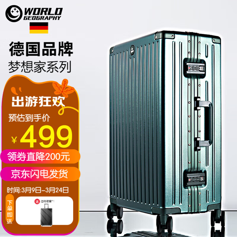 地理德国行李箱男女20英寸登机旅行箱铝框拉杆箱万向轮密码箱 英伦绿价格:699.00元!