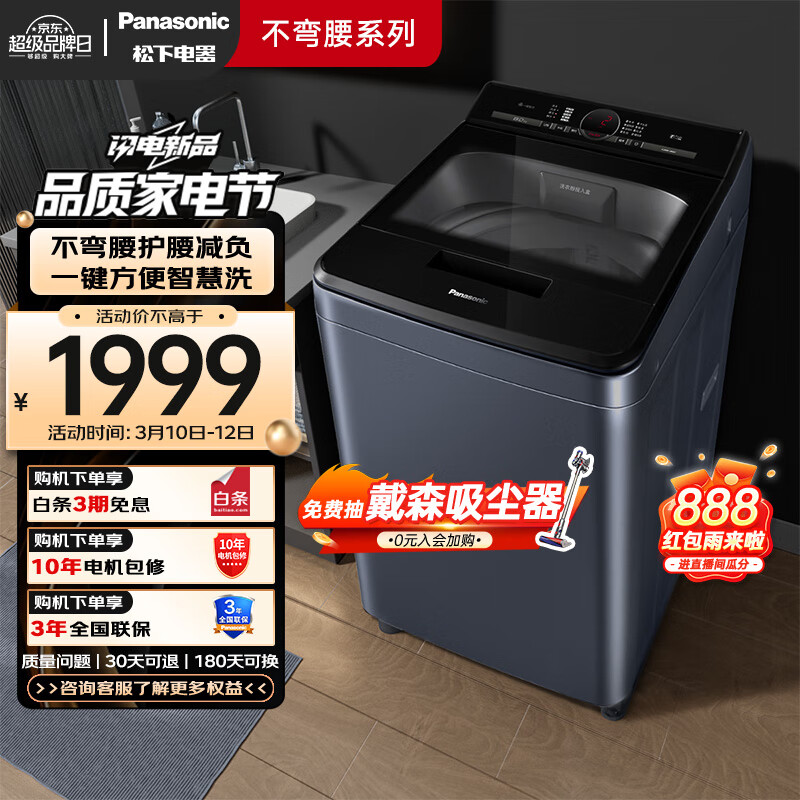 松下(Panasonic)波轮洗衣机全自动 桶自洁免清洗 耐脏 线纸屑 不弯腰 8公斤 以旧换新XQB80-U8VA价格:1999.00元!