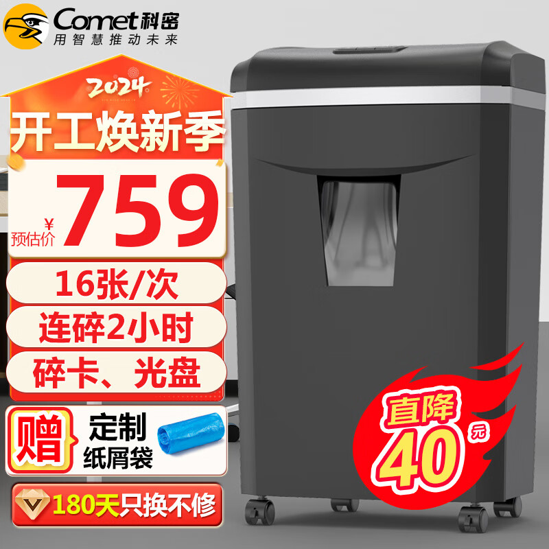 科密(comet)大吞吐长时间专业销毁碎纸机(单次16张 持续碎120分钟 25L 可碎卡、光盘、订书针)1625D价格:799.00元!