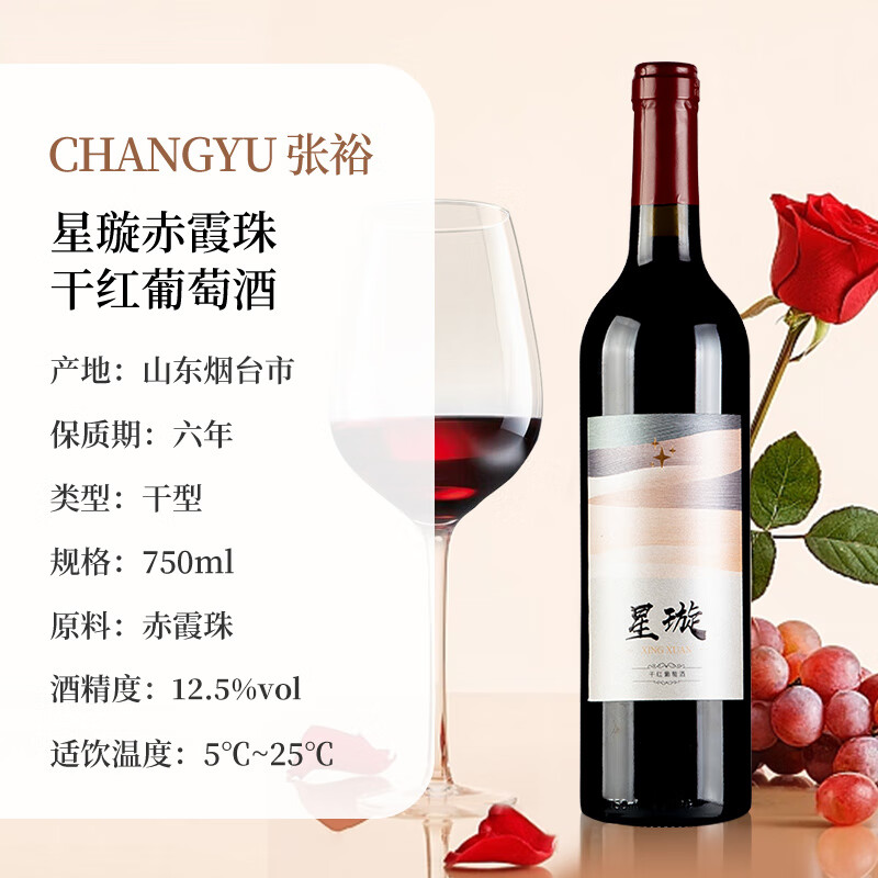 张裕(CHANGYU)星璇赤霞珠干红葡萄酒 750ml*6瓶整箱装 国产红酒价格:238.00元!