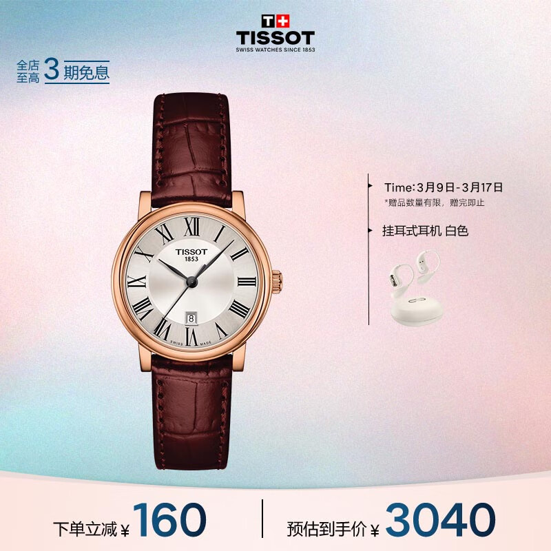 天梭(TISSOT)瑞士手表 卡森臻我系列腕表 皮带石英女表 T122.210.36.033.00价格:3200.00元!
