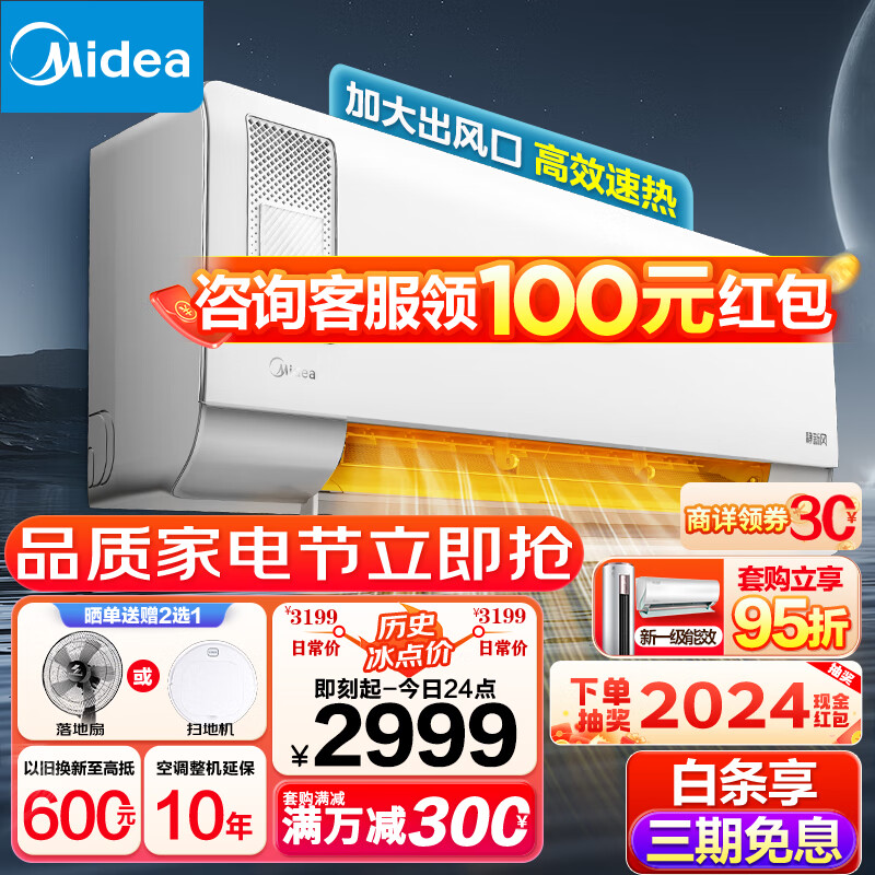 美的(Midea)新风空调挂机大1匹 新一级能效 变频冷暖卧室家用壁挂 空调挂机 智能家电KFR-26GW/N8XF1-1价格:2999.00元!