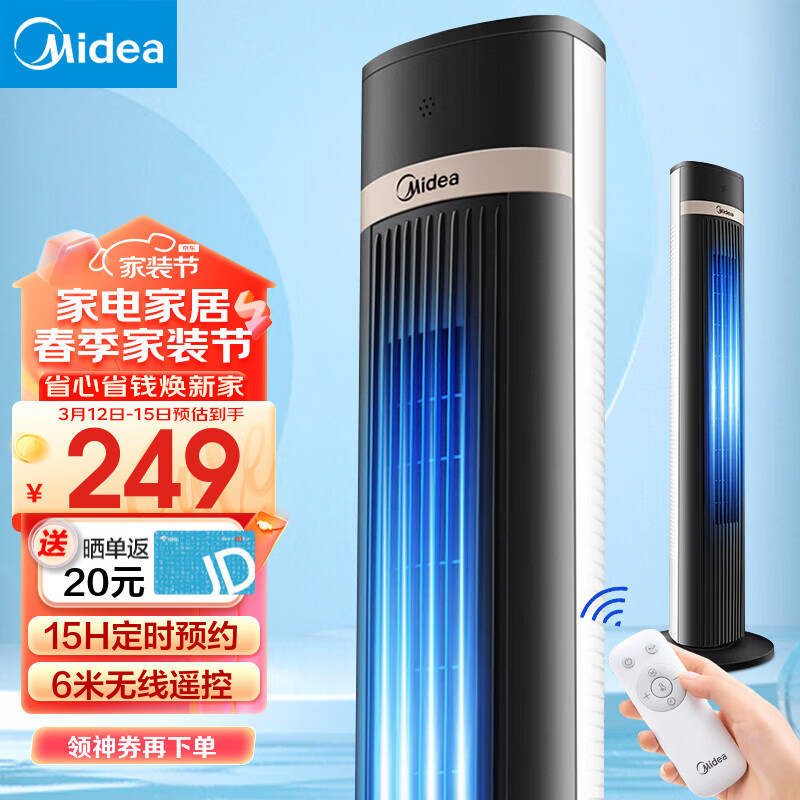 美的(Midea)电风扇家用风扇定时塔扇立式无叶落地扇智能摇头轻音节能降温柔风自然风电扇 【无叶柔风】09MB价格:399.00元!