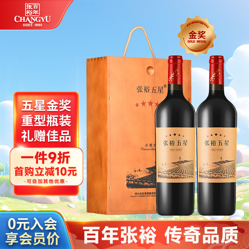 张裕(CHANGYU)五星赤霞珠干红葡萄酒 750ml*2瓶双支礼盒装 国产红酒价格:596.00元!
